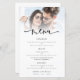 Budget Foto Overlay Skript Hochzeitsmenü. Eine LARGER Größe 5.5" x 8.5" zu einem günstigen Preis, auf einem SEMI GLOSS 110 lb CARD STOCK, ideal für Einladungen, mit etwa der gleichen Stärke wie eine Postkarte oder ein eleganter 110 lb LINEN Stock - für ein luxuriöses, etwas dünneres Gefühl zu einem guten Preis. BITTE BEACHTEN SIE, DASS DIE OPTIONALEN UMGEBUNGEN ETWA EIN WENIG GRÖSSER IN DER GRÖSSE VON 6,75" x 9" ca. Das FELT 100 lbs Papier ist bufffarben, NICHT weiß, fügt also eine rustikale Touch hinzu. Das Papier MATTE 80lbs ist hell weiß, für knackigen Druck, ideal für Ihre Menüs und Programme, während das SATIN 80lbs Papier dünn und leicht, ideal für Gehäuse. Eine informelle Set-Typografie in schwarz für die Hauptüberschrift Menü ergänzt die Erholung des Textes, die Sie leicht personalisieren können. Ersetzen Sie das Beispiel-Foto durch Ihren eigenen Favoriten.