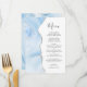 Le bord gauche de cet élégant menu mariage moderne comporte une bordure en aquarelle bleu bébé ornée d'une parties scintillant en faux argent. Le texte personnalisable combine écriture manuscrite et polices cuivre en gris charbon sur un arrière - plan blanc. L'envers est assorti d'un design d'agate bleu et argent bébé.