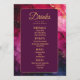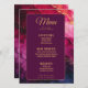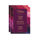 Die Menükarte aus der Sammlung "Celestial Elegance: The Marble Symphony", eine raffinierte und raffinierte Ergänzung zu Ihrem Hochzeitsempfang. Auf der Vorderseite bietet die Karte eine beeindruckende marmorinspiriert Kulisse mit elegantem Winkeln in Weiß und Weiß und schafft so eine luxuriöse Leinwand. Oben wird die Beschriftung "Menü" in fettgedruckter, eleganter Typografie angezeigt, die den Ton für ein geschmackvolles Essen absteckt. Die Namen des Paares und das Hochzeitsdatum werden hervorgehoben dargestellt, was dem Design eine persönliche Touch verleiht. Unterhalb des Kopfes wird eine sorgfältig ausgewählte Auswahl an Speisen, Vorspeisen, Vorspeisen und Desserts präsentiert, die jeweils sorgfältig beschrieben werden, um den Vorlieben des Ehepaares und den kulinarischen Angeboten des Abends Rechnung zu tragen. Die Karte dreht auf der Rückseite und setzt sich mit einem lila dunklen Hintergrund fort, der mit demselben Marmorbild geschmückt ist, wodurch eine nahtlose und raffinierte Präsentation entsteht. Oben wird der Titel "Drinks" elegant ausgestellt und lädt die Gäste dazu ein, die Auswahl an Getränken zu erkunden. Darunter befindet sich eine sorgfältig ausgewählte Getränkekarte, die von Cocktails über erlesene Weine bis hin zu erfrischenden alkoholfreien Getränken reicht. Jede davon wird beschrieben, um die Erwartungen der Gäste zu erhöhen. Diese Karte mit der zeitlosen Schönheit der Sammlung "Celestial Elegance: The Marble Symphony" verbindet moderne Eleganz mit himmlischem Charme und sorgt dafür, dass jedes Detail Ihrer Hochzeitsfeier mit Eleganz erfüllt wird. Diese Karte lädt die Gäste ein, die kulinarischen Köstlichkeiten Ihres besonderen Tages zu genießen und dabei das raffinierte und himmlische Thema zu reflektieren, das Ihre Feier bestimmt.