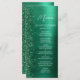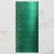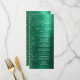 Cet élégant menu mariage moderne présente une bordure en parties scintillant de diamant sur un arrière - plan en métal brossé vert émeraude. Le texte personnalisable combine écriture manuscrite blanche et polices sans serif. Le design en métal brossé vert et en parties scintillant est répété à l'envers.
