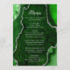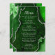 Create a striking presentation with this green and silver agate marble menu, perfect for wedding receptions and versatile enough for stylish multi-purpose use. Deep emerald tones, organic stone-inspired textures, and shimmering silver accents come together to create a refined yet dramatic look that pairs beautifully with fall or winter celebrations. Designed to complement elegant, modern, and glamorous events, this agate-inspired menu can be customized for wedding dinners, cocktail hours, dessert tables, or upscale event and restaurant menus, offering timeless sophistication that extends well beyond the wedding day.