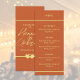 Hochzeitsmenü mit Terrakotta- und Goldfarben. Großartige Schreibwaren für Paare, die Terrakotta als Hochzeitsfarbe benutzen. Passen Sie den Text auf der Vorder- und Rückseite des Menüs an. Verwenden Sie die Vorlage, um Ihre eigene Hochzeit Terrakotta und Gold Menü.