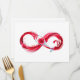 Infinity symbole of continuous stream of red pouring into glass glass glass on white background.