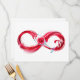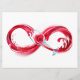 Infinity symbole of continuous stream of red pouring into glass glass glass on white background.
