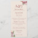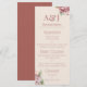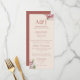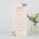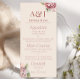 Ce menu de mariage élégant présente un thème floral élégant. Deux exemples d'initiales de monogramme sont imprimés dans la partie supérieure. Vous pouvez personnaliser le menu pour inclure vos propres initiales et options de nourriture personnalisées. Un délicat bouquet de fleurs d'hortensia aquarelle est imprimé en haut à droite, et un autre en bas à gauche. Les hortensias sont d'un rose romantique et rosé.