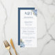 Ce menu de mariage élégant présente un thème floral élégant avec de belles fleurs d'hortensia. Deux exemples d'initiales de monogramme sont imprimés dans la partie supérieure. Vous pouvez personnaliser le menu pour inclure vos propres initiales et options de nourriture personnalisées. Un délicat bouquet d'hortensias bleus aquarellés est imprimé en haut à droite et un autre en bas à gauche.