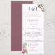 Ce menu de mariage élégant présente un thème floral élégant avec de belles fleurs d'hortensia. Deux exemples d'initiales de monogramme sont imprimés dans la partie supérieure. Vous pouvez personnaliser le menu pour inclure vos propres initiales et options de nourriture personnalisées. Un délicat bouquet d'hortensias rose et blanc aquarellés est imprimé en haut à droite, et un autre en bas à gauche.