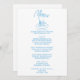 Un menu vintage rétro moderne, bleu et blanc mariage pour le dîner. Ce qui présente un design modèle chic de la typographie arrière - plan blanche et de la typographie manuscrite bleue. Avec une table dessinée à la main, une bouteille de vin et des verres, un plat et une fourchette. Un Parfait et assorti à toute la suite.
