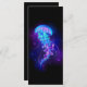 Grande méduse bleue, artistiquement dessinée, brillante, brillante, avec de longues tentacules sur arrière - plan noir avec bioluminescence violette. Méduse brillante.