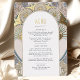 Genießen Sie Ihr kulinarisches Erlebnis mit unserer atemberaubenden Speisekarte mit Navy Blue Bougainvilleas und verzierten Details, die von Alphonse Muchas ikonischem Jugendstil inspiriert wurden. Diese mit einer echten Folie bedruckte Menükarte ist ein Meisterwerk, das jedem Event Eleganz und Eleganz verleiht. Die komplizierten Details rund um die Menüinformationen auf dieser Karte, wie z.B. die Zierrahmen und dekorative Elemente, sind ein Hinweis auf Muchas Stil und sorgen für ein visuell beeindruckendes und unvergessliches Design. Aus hochwertigen Materialien gefertigt, kann es individuell auf Ihre individuellen Bedürfnisse und Vorlieben abgestimmt werden. Von formellen Abendessen bis hin zu intimen Ansammlungen, ist unsere Speisekarte der perfekte Weg, um eine Touch Glamour und Kunsthandwerk zu Ihrem kulinarischen Erlebnis hinzuzufügen. Warum sollte man sich also mit einem einfachen Menü zufrieden geben, wenn man ein Kunstwerk haben kann? Wählen Sie unsere Alphonse Mucha-inspirierte Menükarte, gedruckt mit echter Folie, um Ihre Gäste zu beeindrucken und Ihre Veranstaltung unvergesslich zu machen.