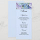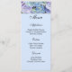 Die Menükarte wird auf weißem Grundpapier mit hellblauer Hintergrundfarbe und einem farbigen Hydrangeas-Druck angezeigt. Skript und Standardtext in hellschwarz. Passen Sie die Menüpunkte an Ihre, indem Sie auf Anpassen Button, suchen Sie nach rechts und finden Sie geeignete Felder, um Ihre Informationen zu ändern. Wir wünschen Ihnen viel Spaß beim Hochzeitsfest.