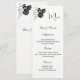 Diese Vorlage der Menükarte wird auf dem Grundpapier in Weiß mit einer schönen schwarzen Rose gedruckt. Skript und Standardtext in schwarzer Farbe. Passen Sie die Namen und Menüpunkte an, indem Sie auf die Schaltfläche Anpassen klicken, suchen Sie nach rechts und finden Sie geeignete Felder, um Ihre Informationen zu ändern. Stock Print