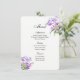 Die Menükarte wird auf weißem Grundpapier mit einem hübschen lila Orchideenprint angezeigt. Skript und Standardtext in schwarz. Passen Sie die Menüelemente an, indem Sie auf die Schaltfläche Bearbeiten anpassen klicken, suchen Sie nach rechts und suchen Sie geeignete Felder, um Ihre Informationen zu ändern.