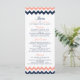 Simple mais élégante, la collection moderne chevron mariage est un design époustouflant avec un joli imprimé zig-zag de couleur rose, marine et blanche, parfait pour toute célébration mariage moderne. Ces cartes de menu peuvent être personnalisées pour votre occasion spéciale et feraient le menu parfait pour votre mariage, douche nuptiale, fête de fiançailles, fête d'anniversaire et bien d'autres occasions spéciales. Ajoutez votre libellé personnalisé à cette conception à l'aide des cases "Modifier ce modèle de conception" situées à droite de l'élément, ou cliquez sur le bouton bleu "Customiser" pour arranger le texte, modifier les polices et les couleurs et ajouter des informations ou des images supplémentaires à cette conception.