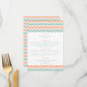 Simple mais élégante, la collection moderne chevron mariage est un design époustouflant avec un joli imprimé zig-zag dans une couleur pêche, menthe et blanche, parfait pour toute célébration mariage moderne. Ces cartes de menu peuvent être personnalisées pour votre occasion spéciale et feraient le menu parfait pour votre mariage, douche nuptiale, fête de fiançailles, fête d'anniversaire et bien d'autres occasions spéciales. Ajoutez votre libellé personnalisé à cette conception à l'aide des cases "Modifier ce modèle de conception" situées à droite de l'élément, ou cliquez sur le bouton bleu "Customiser" pour arranger le texte, modifier les polices et les couleurs et ajouter des informations ou des images supplémentaires à cette conception.