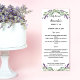 Une carte à la carte élégante. Personnalisez et ajoutez votre nom, votre date, votre événement et le menu. Décoré de fleurs de lavande, de fleurs et de verdure d'eucalyptus.