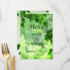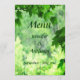 Dieses schöne, grüne Hochzeitsmenü lädt Sie ein, in eine grüne Welt des Friedens und der Ruhe einzutauchen. Ahorn-Blätter umrahmen das Bild und führen zu einer sonnigen Waldlandschaft in Gelb, Weiß und Waldgrün. Anpassen des Textes für Ihren besondere Anlass.
