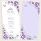 Lilac purple, silver and white Quinceanera celebration slim menu card. Features, script font, silver butterflies, watercolor roses and tiara. Perfect for an elegant princess style glam celebration. Personalize with your own details.