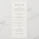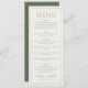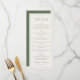 This elegant wedding menu design exudes sophistication with its clean, minimalist layout and classic typography. The soft color palette of muted greens and whites creates a serene and timeless atmosphere, perfect for a refined celebration. Each section is clearly delineated, guiding guests through the culinary journey with ease. Ideal for couples seeking an understated yet sophisticated touch to their special day, this design allows for seamless customization while maintaining its polished aesthetic.