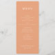 This elegant wedding menu design features a warm, peach-toned background that exudes sophistication and charm. The clean, modern typography complements the minimalist layout, highlighting each course with simplicity and grace. Perfect for a romantic celebration, this design captures an inviting and intimate mood, ideal for showcasing your special day's culinary delights. With its customizable text areas, it allows you to personalize every detail while maintaining a cohesive and stylish look throughout your event.