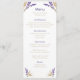 Rien ne dit romance comme la lavande, et sur ce menu mariage de automne, les fleurs délicates font un cadre doux pour le texte. Le blé est associé à la lavande pour ajouter une touche rustique au design. Une police sans serif est utilisée pour les titres pour la simplicité moderne. Sur le dos, un arrière - plan violet foncé contraste avec un front blanc. Un motif de blé et de lavande orne également l'arrière. Célébrez votre mariage de automne romantique avec ce menu lilas rustique.