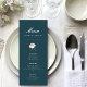 Bienvenue dans notre carte de menu élégante et moderne en coton vert, une délicieuse addition à votre célébration de mariage en tant que mariée et marié. Avec son fond vert sarcelle et son texte blanc croquant, cette carte de menu dégage de l'élégance et de la sophistication, ce qui en fait le choix parfait pour votre jour spécial.