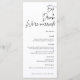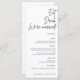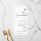 Ce menu mariage présente une belle police de caractères affichant les mots "manger, boire, nous sommes mariés" pour une façon élégante d'afficher votre menu mariage à vos invités.