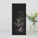 Ambiance florale délicate, arcs subtils et fontes sans serif modernes dans une palette de couleurs lilas, mauve et vert sage doux, se combinent avec des arrière - plans noirs et blancs pour donner aux pièces de cette élégante suite de mariage une ambiance moody et romantique. L'étroite carte de menu de la réception qui apparaît ici permet au modèle d'ajouter facilement ses propres choix de menu. Recherchez ID998 pour voir la collection complète.