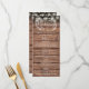 Elégante carte de menu mariage florale avec des noms de style signature, cette carte de menu moderne peut être personnalisée avec vos informations en lettrage blanc chic sur un arrière - plan de bois rustique. Conçu par Thisisnotme©