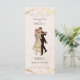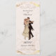 Magnifique menu unique vintage style mariage des années 1920. Image romantique d'un couple en train de danser. Le gentleman est habillé d'un costume noir avec des queues et la dame est habillée d'une robe crème. L'avant de ce menu est mis en surbrillance avec des bordures d'effet or. Facilement personnalisable pour ajouter vos propres détails de menu.