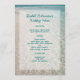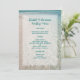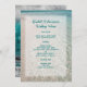 Menu de mariage de plage modèle. Sable tropical et arrière - plan de mer avec deux modèles texte de couleur bleu marine. Le titre avec les noms du couple est en plus grand script. La nourriture servie, des hors-d'oeuvre aux boissons, en passant par le gâteau mariage et le bar à sucreries, est indiquée en forme de paragraphe. Une autre image d'eau de mer couvre l'arrière de ce papier de 5 x 7 pouces. Le design est parfait pour toute réception de mariage au bord de la mer.
