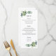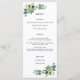 Menu présentant des feuilles d'eucalyptus et des plantes grasses aquarellées. Excellente carte de menu pour mariages, enterrements de vie de jeune fille, baby showers, événements spéciaux et réceptions. Personnalisez avec vos informations. Cliquez sur "cliquez pour personnaliser davantage" pour changer le style, la taille ou la couleur de la police.