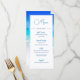 Belle plage bleue et océan bord de mer Moderne Elegant Wedding Menu design. Un menu de mariage personnalisé avec vos informations facilement changé pour customiser votre mariage stationnaire. Mariage personnel stationnaire de la gamme Fine Designs de Chessie.