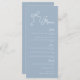 Élégez votre expérience gastronomique grâce à ce menu rétro de mariages bleu poussiéreux, qui présente notre illustration d'origine dessinée à la main, un complément parfait à votre mariage vintage moderne ou à des événements spéciaux. Tous les détails de l'invitation sont modifiables, y compris la couleur de l'illustration.