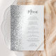 Le bord gauche de cet élégant menu mariage moderne présente une bordure de parties scintillant en faux argent. Le texte personnalisable combine écriture manuscrite grise et police sans serif sur un arrière - plan blanc. L'envers présente une parties scintillant blanche et argentée assortie.