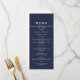 Le menu bleu marine de notre mariage dégage simplicité et élégance avec un design minimaliste. Le look chic est rehaussé par un coeur de corde argentée romantique et un script de calligraphie moderne, ce qui en fait un choix sophistiqué pour votre journée spéciale.