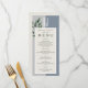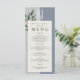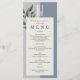Simple, moderne, minimaliste, botanique, élégant menu mariage vert sauge et bleu poussiéreux avec monogramme géant - initiales en haut, vert et script de calligraphie tendance.