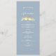 Elégante carte de menu bleu mariage, personnalisée avec le nom du client et présentant un design romantique d'oiseaux de l'or. Cette grande mise en page minimaliste comprend vos choix de dîner sur mesure et s'ajoute parfaitement aux réglages individuels. Idéal pour les mariages pastel, printaniers, estivaux ou romantiques avec une palette de couleurs bleu et or. Coordonnée avec magnifiquement avec les invitations de mariage et la papeterie d'amoureux assortis.