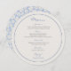 Chic, frais et ludique. Ce modèle circulaire de carte à menu propose un ensemble de polices modernes et tendance, contre un arrière - plan blanc cassé chaleureux. Il comprend 4 parties repas et boissons. Le dos de la carte porte une veste bleu fleurie et ludique. Génial et amusant. Personnalisez pour en faire votre propre.
