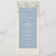 Vous apprécierez ce menu de mariage élégant, qui présente un design floral bleu poussiéreux et chic, agrémenté de fleurs sauvages rustiques et d'accents dorés. L'esthétique d'inspiration vintage apporte une touche de charme boho, mêlant parfaitement sophistication et beauté naturelle.