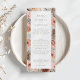 Ce menu est composé d'orchidées aquarelles, de roses, de feuilles de palmiers et de brindilles dans une palette de couleurs neutres. Le dos est lavé d'aquarelle brun clair. Parfait pour les mariages d'automne !