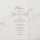 Elégant, boho, fleur sauvage, botanique, sauge vert mariage menu avec coeur de corde argentée et dentelle vintage dorée fleurie.