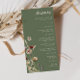 Menu Mariage Boho Vert. Ce menu de mariage élégant et élégant présente de magnifiques fleurs sauvages aquarellés peints à la main et disposés comme un joli bouquet parfait pour le printemps, l'été ou les mariages de automne. Trouvez les objets correspondants dans la collection de Mariages Fleurs sauvages de saumons verts Sage.
