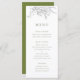 Moderne, ludique et sophistiqué, ce menu mariage est composé d'un bouquet à débordement dessiné à la main, associé à une typographie chic dans un vert foncé, coordonné avec le vert plus clair sur l'arrière. Le contraste entre le noir floral et le vert ajoute un peu de glamour.