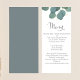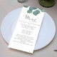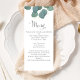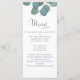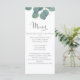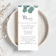 Belle feuille succulente mariage eucalyptus carte de menu de réception. avec script de calligraphie, simple eucalyptus verdure et feuillage vert, parfait pour le décor de réception de mariage