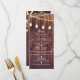 Carte de menu Mariage campagnard Rustic Wood & String Lights.