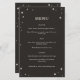 Ce menu mariage céleste fait partie d'une collection inspirée des cartes tarot. Ce design présente une bordure avec des étoiles illustrées dans une palette de couleurs noir et crème. Il conviendra à merveille à un mariage à thème céleste ou à toute personne désirant un style éffrayant ou sorcier pour son menu mariage.