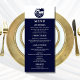 Apportez une touche d'élégance balnéaire à votre journée spéciale avec cette carte de menu mariage côtier personnalisée, qui présente un design graphique chic d'un palmier bleu marine, le soleil se levant au-dessus de l'océan, et des oiseaux paisibles en vol - le tout magnifiquement encadré dans un cercle de marine. Conduit à un élégant arrière - plan blanc et marine, ce palmier design mariage saisit la beauté sereine de la mer et le charme détendu d'une fête tropicale. Doté d'élégantes polices de caractères typographiques et de calligraphie, cet élégant menu de mariage sur la plage est parfait pour les cérémonies d'été et les réceptions côtières. Un ajout intemporel à votre collection de menus mariages.