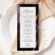 Ce menu mariage moderne et élégant présente un arrière - plan d'agate violet d'aquarelle orné d'une fausse parties scintillant dorée. Le texte apparaît dans une écriture élégante gris fusain et des polices sans serif sur un rectangle blanc. La conception de l'agate est répétée à l'envers.