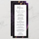 Ce menu mariage moderne et élégant présente un arrière - plan d'agate violet d'aquarelle orné d'une fausse parties scintillant dorée. Le texte s'affiche dans une élégante écriture manuscrite gris charbon et des polices de cuivre sur un rectangle blanc. La conception de l'agate est répétée à l'envers.